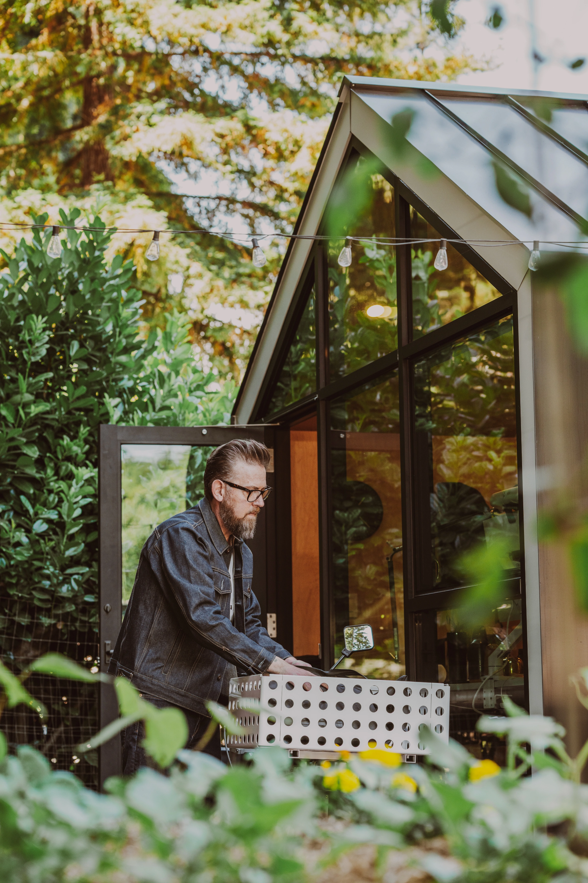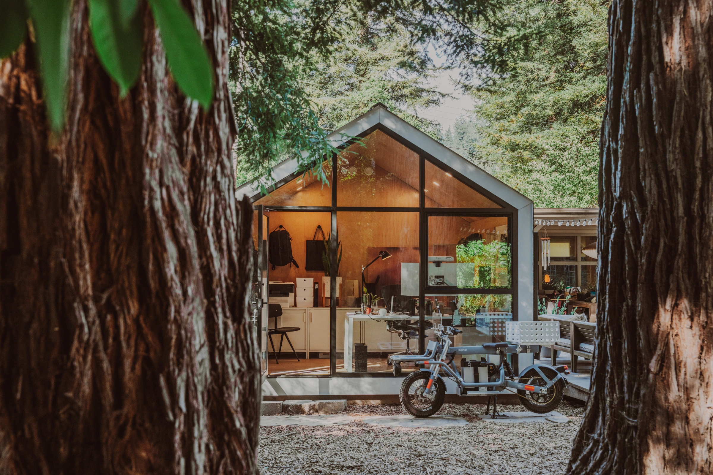 When asked to sum up his experience finding, purchasing, and building his Bunkie, Holladay excitedly said, “Well, OK, let me just say this. I’m a huge fan of all things design – from architecture to fashion to branding, which is what I specialize in, photography too. So, when we picked out our little house in the Santa Cruz mountains, it was a beautiful, tiny little home. When it came time to look for a studio for the yard, the architecture of it really mattered to me. My second choice just wasn’t good enough. They were trying too hard design-wise. They were too boisterous and grandiose. Whereas the Bunkie fits out in nature. Its simple lines fit in with my Redwood trees. It’s kind of hard for me to describe, but it’s just pared all the way down to the bare minimum of what a studio building like this should be like. This is like what it should be. There aren’t flourishes and overhangs and things added onto it to make it feel cool. It just is cool the way it is, you know what I mean?”