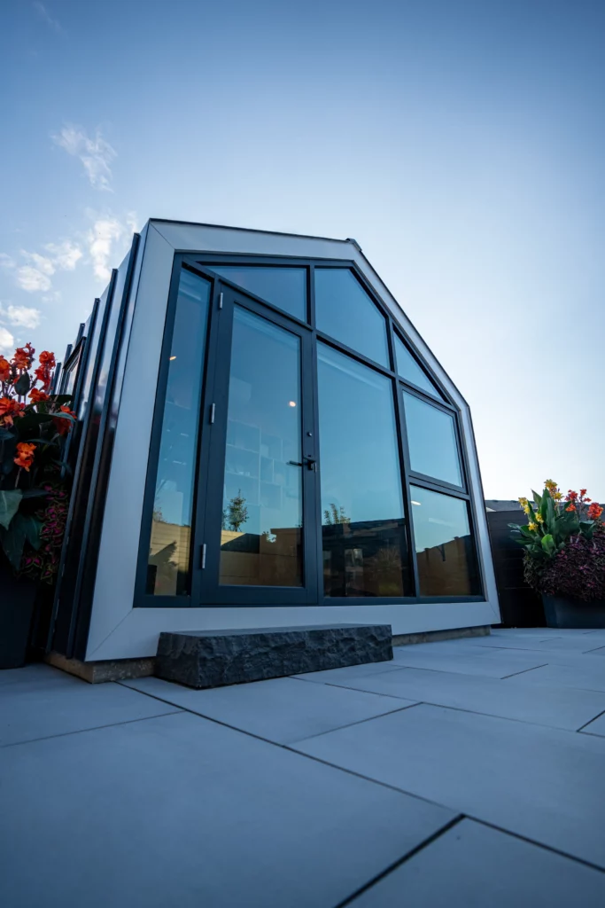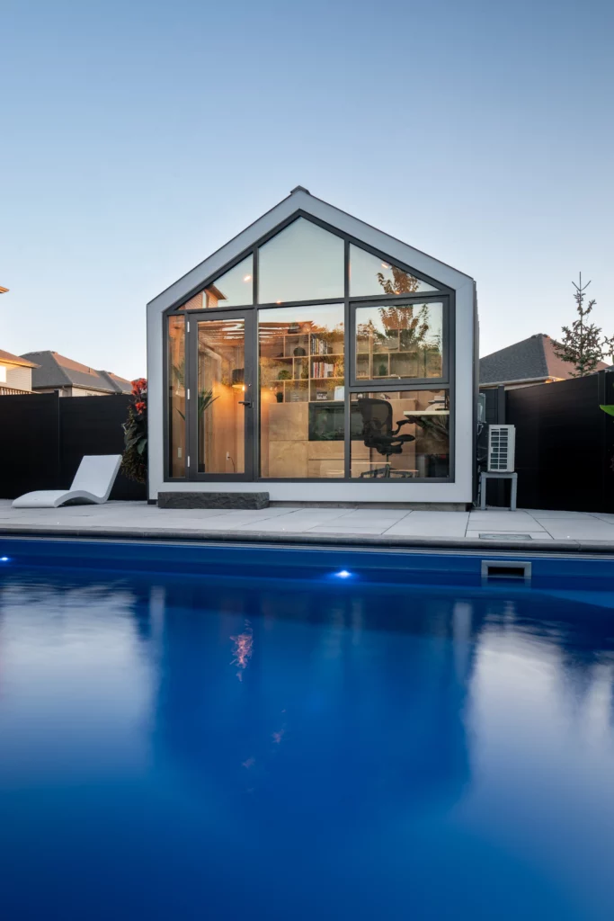 The decision to choose The Bunkie Co. was easy. I was drawn to their Monarch design for its aesthetic appeal, particularly the large glass wall that provides ample natural light. Despite its compact size, the interior feels spacious and comfortable, creating a soothing working environment throughout the year.