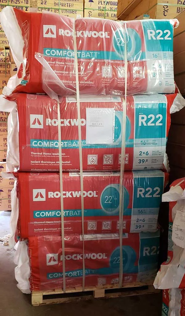 Batt insulation is compressed at the factory and strapped to 4’ x 4’ pallets no more then 8-9 high at a time. Larger models may require additional batts attached to different shipping pallets to save space.