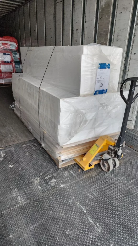 - Use the large pallets to keep interior panels, glass panes and metal cladding off the ground